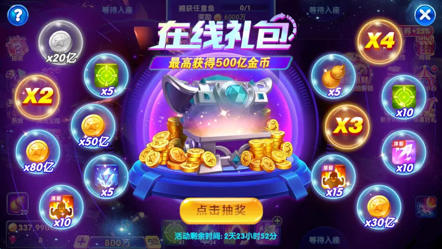 4、每日在线游戏,也可以根据时长抽取奖励,最高可获得80亿金币。