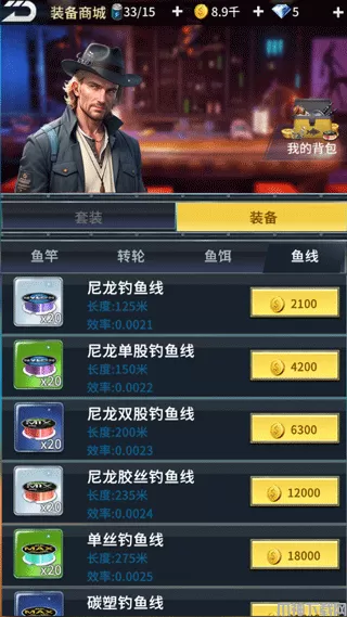 5、您还没有钓过鱼吗?不用担心!我们为您准备了一系列渔具,而且渔具可以不断强化哦! 收拾好鱼竿,渔线轮,鱼线和鱼饵,立刻开启您的捕鱼大亨之路吧!