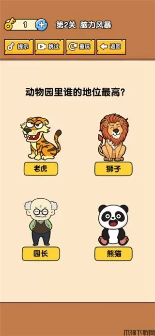 3、游戏第二关脑力风暴,动物园里谁的地位最高?