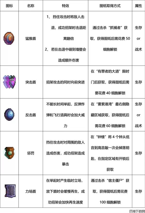盾牌可以举起减少伤害并反击敌人,在恰当的时机瞬间举盾还可以招架、完全防御并且反伤敌人,同时弹回远程攻击。