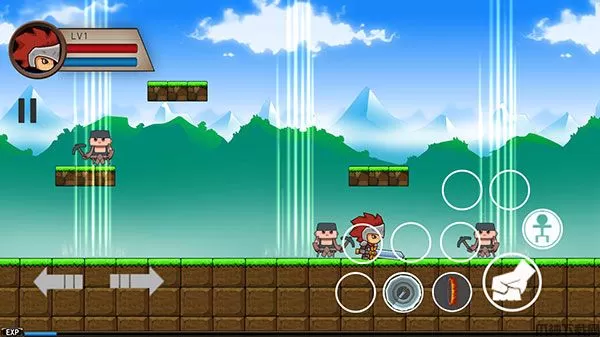作为一款闯关动作冒险游戏,爆爆地下城还是遵循经典的操作方式,左侧移动,右侧跳跃、攻击和技能,非常地中规中矩,以闯关为主打,通过击杀怪物来获取经验、金币和装备。