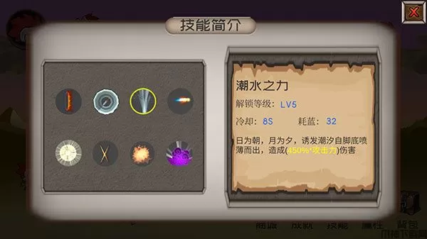 技能方面主要包含八种,达到一定的等级即可解锁,每个技能的效果各有差异,且都会出现在面板。