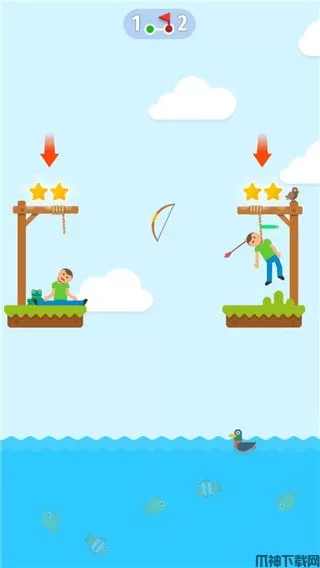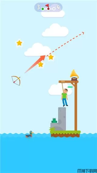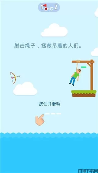2、将弓箭射中绳子就可以解救人,但是射中人会掉血;
