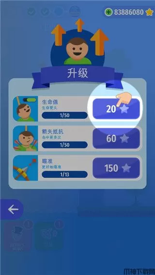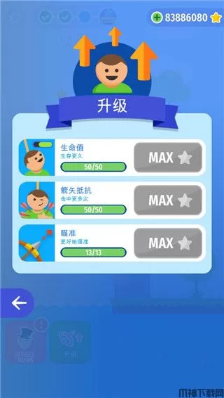 4、这里可以对人的生命值还有弓箭瞄准等进行升级;