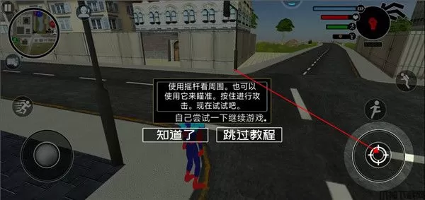 3、按住右下角的图标可以耦控制火柴人进行瞄准,还可以查看周围环境。