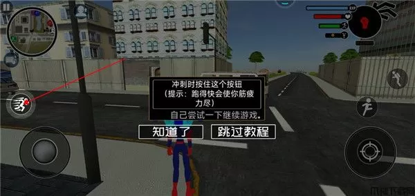 6、点击左边的图标可以控住火柴人冲刺快跑,但是会让火柴人筋疲力尽。