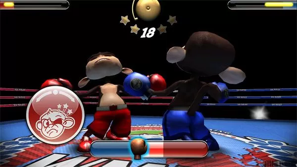 猴子拳击是一款格斗拳击类的游戏,游戏采用卡通滑稽的游戏风格,3D效果、光影特效都很不错,画面的细腻程度也很赞,细节和色彩都有较高的表现度,游戏的音乐也完全把拳击对抗的感觉渲染了起来,猴子们被打、打人的时候都会发出惨叫声,手套的音效也刻画的比较细腻,整体效果都是非常的不错的。