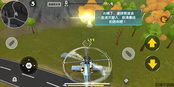 3、现在我们驾驶载具去寻找战场中的敌人,并点击右侧射击按钮消灭他们。