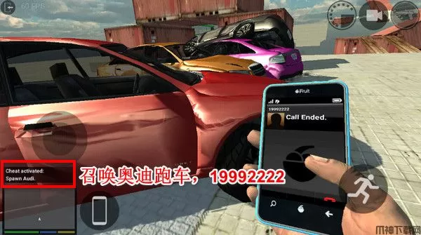 6、接下来试试刷车吧,这一刷可停不下来啊!召唤车子也是用手机菜单拨号输入作弊码实现的,刷车需要输入19992222;