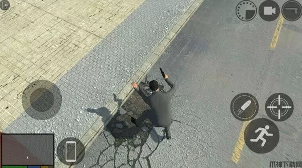 1、双击打开洛杉矶犯罪游戏,点击屏幕左下角地图旁边的手机图标,调出手机菜单;