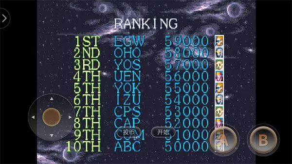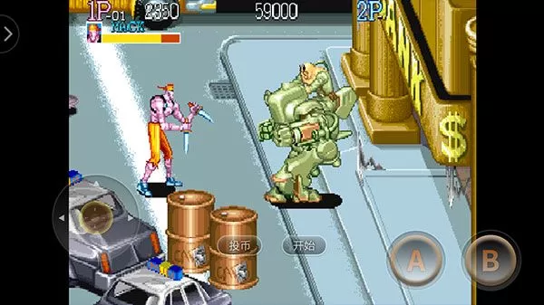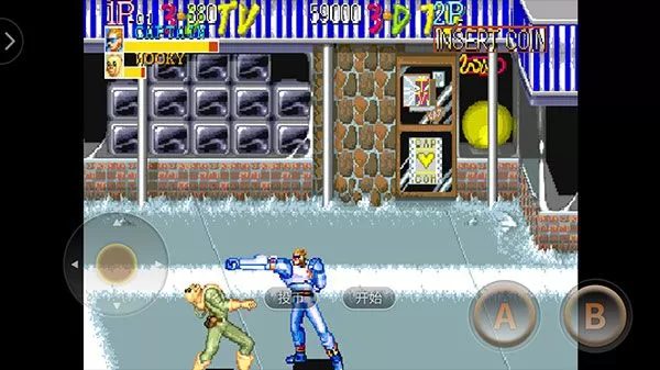 1、下载安装好名将街机游戏联机版后首先点击“投币”,然后点“开始”。