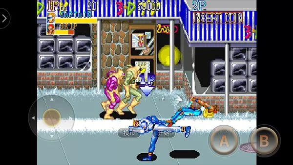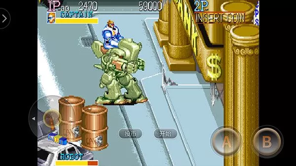 街机名将手机版是一款经典动作闯关手游,英文名为Captain Commando,又称“名将军团”、“刀手”、“刀客"。游戏最多能够支持4人同时联机玩,内置8个方向键功能的摇杆,两个功能键,玩法也很简单,开局玩家可以从MACK、BABY HEAD、Captain Commando以及GIUZU这四位主角中选择一位开始冒险,击败关卡内的敌人获取道具和经验来进行升级,由于不同的角色都有不同的连招和玩法,所以玩家可以根据自己的战斗风格进行选择,自由感受一场畅快的冒险体验!