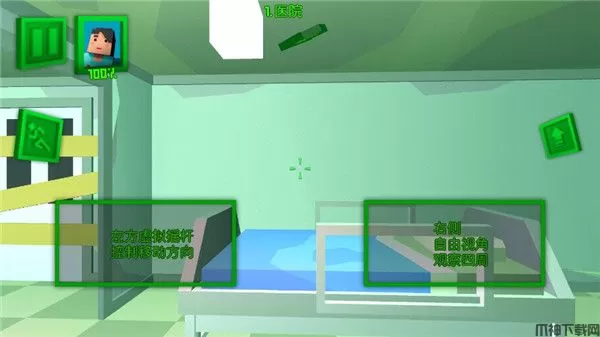 3、进入游戏后左方虚拟摇杆控制移动方向,右侧自由视角观察四周。
