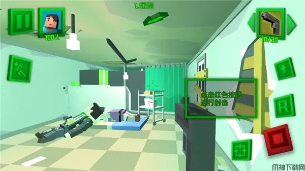 4、点击红色按钮就可以射击僵尸,上方还可以切换武器,但是武器需要自己拾取。