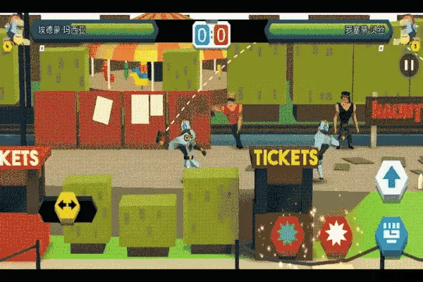 不同的场景可利用不同的手段,比如在火车上,萌新即使无法将对手击倒,也可以将敌人向后节节逼退,当他掉下火车,你就不战而胜啦。
