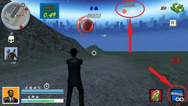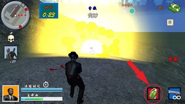 玩家点击右下角的手雷图标即可扔出手雷弹,可以直接炸死一群敌人。