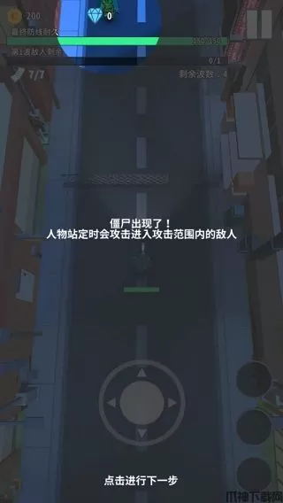 2、僵尸出现了,人物站定时会自动攻击,待僵尸进入攻击范围便可触发自动瞄准与攻击操作