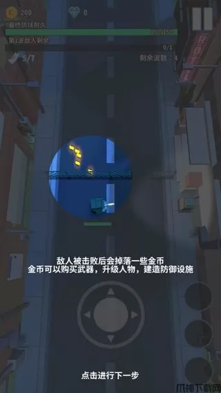 3、僵尸被击毙后会掉落一些金币,而金币是购买武器、升级任务,以及建造防御设施最为重要的资源,请注意收集哦