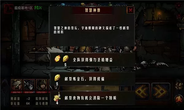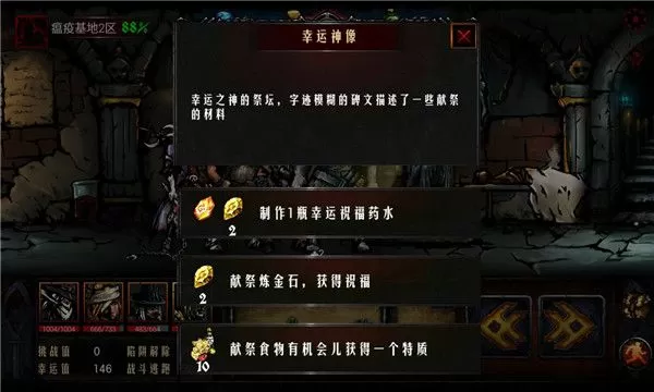 进去以后,如果全队满血,直接退出(不要用逃脱卷轴)。只会损失体力,然后获得正面特质(100%是正面特质,不会出现负面)