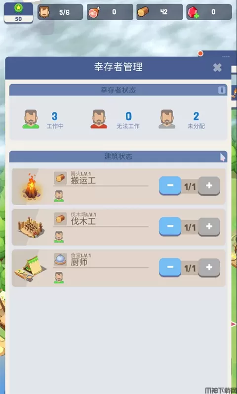 5、点击右边的人物模式,即可看见游戏中幸存者管理中有多少人忙碌或者未分配工作