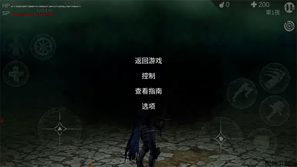 1、各种漆黑恐惧的画面场景,扮演好骑士职责进行守护墓碑不被他人破坏。