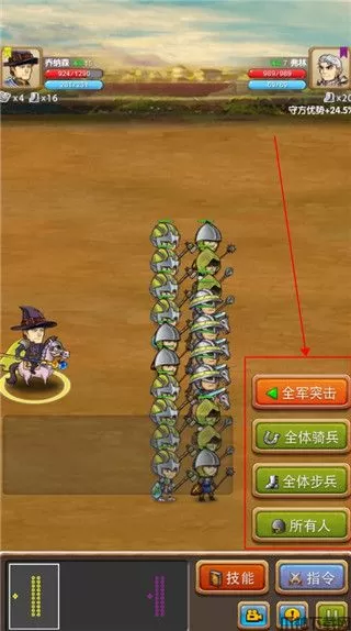 5、点击右下角就可以指挥你的军队,可以让特定兵种出击或者全军一起进攻。