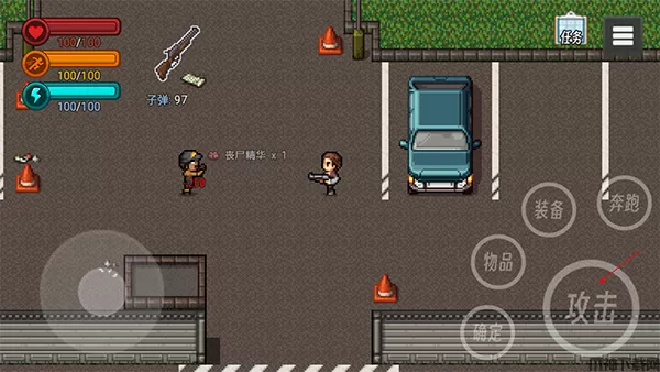 3、在面对丧尸时摁下攻击键射击(在手上是枪的状态),杀死丧尸可以得到丧尸精华