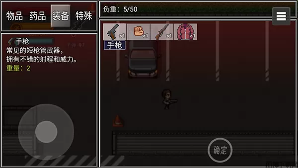 6、点击道具可以查看它的具体说明,例如手枪是常见的短枪管武器,拥有不错的射程和威力