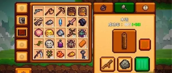 木墙的合成公式:木头+石头=木墙(成功率90%)