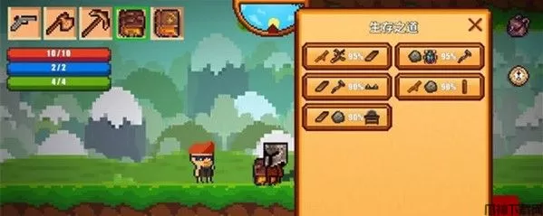 将木板给棕色头发角色之后,我们就能获得初始的“生存之道”秘籍了。只要将秘笈拿在手上,按下A键就能查到合成表,使用秘笈合成还会额外增加50%成功率哦!