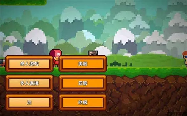 进入游戏之后,我们选择“开始”,然后会出现单人游戏还是多人连接,点击“多人连接”按钮,就会出现美服、亚服、欧服。