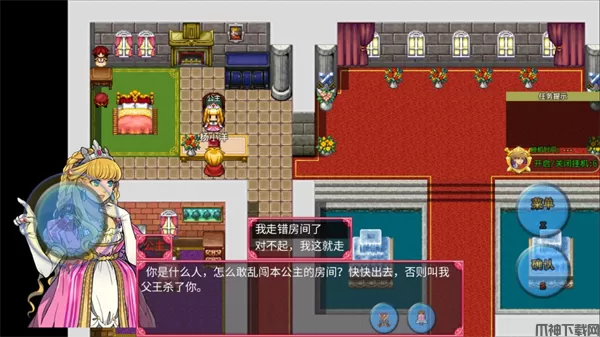 4、走出传送教堂,进入到幻想城,出门右转一直往上走进入到公主房间,接取任务(帮公主找猫)。