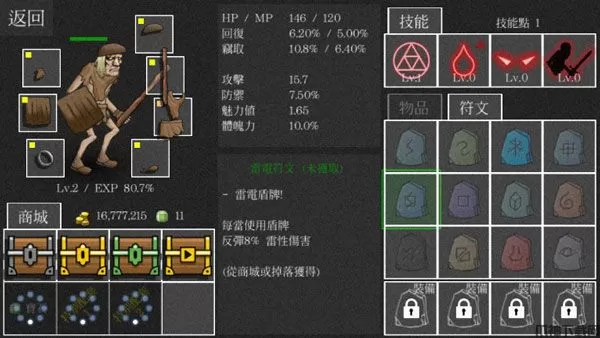 4、主角有血条、蓝条、盾牌耐久度,前两个可以在战斗中慢慢恢复,后一个要是没了,盾牌就爆了……