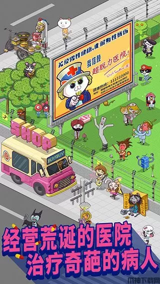 超脱力医院是一款以经营医院为主题的模拟经营类游戏,游戏以无节操的画面来表现出一些在现实生活中很常见的事情,为玩家带来全新的经营游戏体验。在游戏中你是精神病院院长,你可以倾尽所能打造能称霸银河系的精神病院,你可以邂逅魔性的病人,发现奇葩的疾病,自拍成瘾、网购成瘾、拖延症等等。与大多数经营游戏一样,你需要通过升级诊室、放置观赏植物、音乐等道具提升病人的满意度,当满意度越高治疗时间随之缩短,自然收益也会更高。同时收集神秘的道具,发现隐藏的故事,并且超多梗等待被你发现,绝对让你笑到脱力!不断扩建你的医院,带领它走上行业巅峰吧!