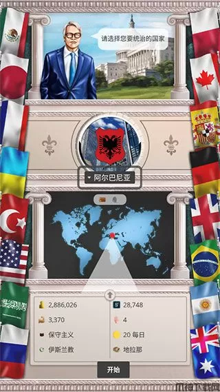 2、开始,你可以选择成为任何一个国家的总统,开始游戏