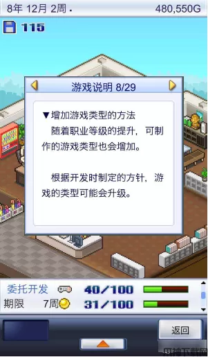 4、培养公司职员后,可开发的游戏种类和内容会变多;