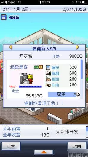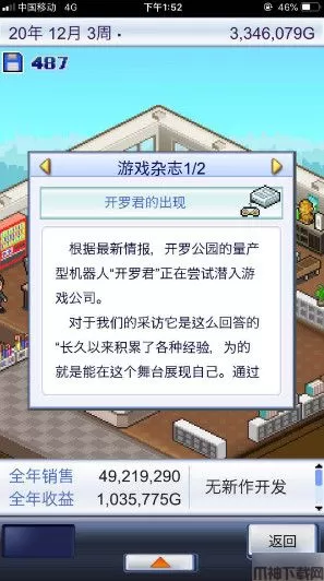第四步:获得5次最佳游戏奖之后就会出现游戏杂志发布的新闻,说开罗君最近在找工作,我们赶紧进行海外照片,就可以看到开罗君在里面了。