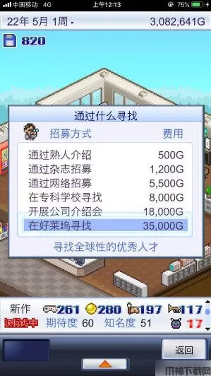 2、最高效的还是雇佣更强的员工,在第一次公司扩建之后可以雇佣中级员工,使用中级员工获得3个小奖项之后进行第二次公司扩建,然后使用海外招聘照片最强8人中的其中几个人,但是这个过程是一步一步的,因为我们的资金需要一点一点累积。