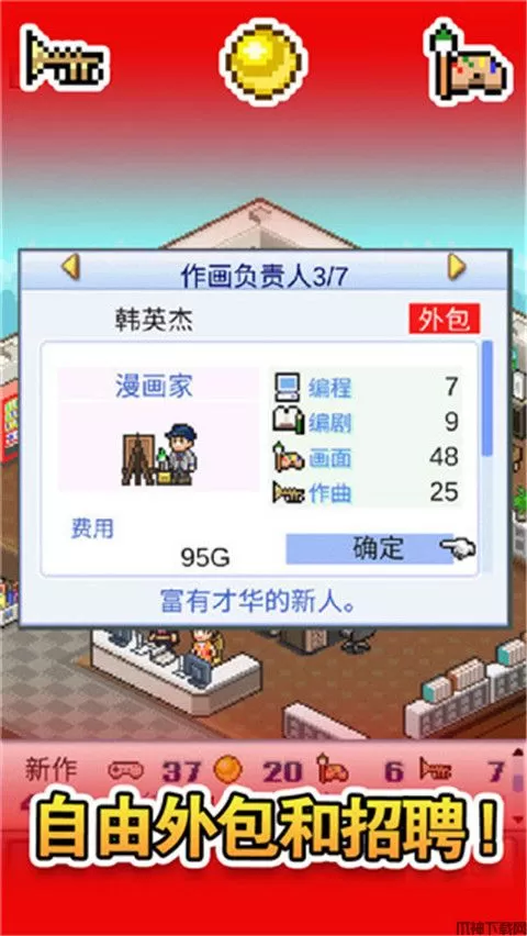 另一方面,游戏开发物语在玩法方面也是延续了一贯的作风,玩家需要尽可能的吸引更多的人才来公司,游戏中的员工分为:总导演、程序员、制作人、设计师、音响制作师等多种类别,与现实中的情况也非常相似,玩家可以通过发招聘广告的方式吸引他们来公司面试,然后自己选出合适的人员,非常的有趣,喜欢玩开罗游戏的玩家可不要错过这款经典的游戏,快来下载吧!