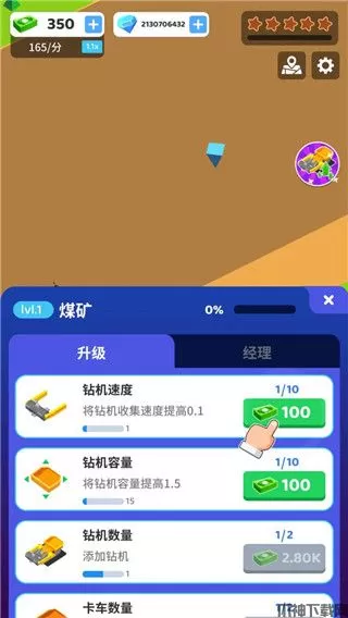 2、也可以点击使用钞票对钻机进行速度升级