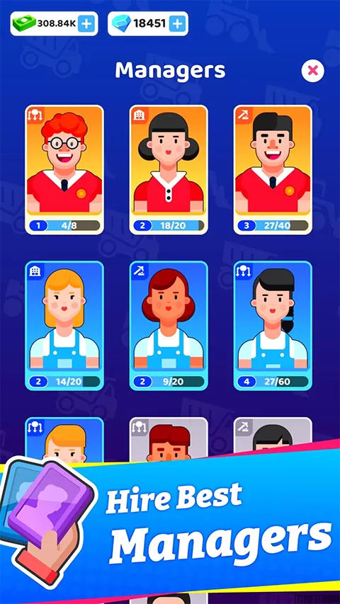 4、顶级员工,游戏中加入了许多的顶级员工等着你来招募,可帮助你更快的发展公司