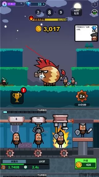 1、利用自己杀敌来赚取到的金币,你可以快速提升工厂当中的所有工具以及工厂面积