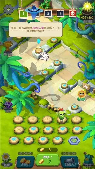 3、将合成好的仙人掌放置在战场,建立你的防线。