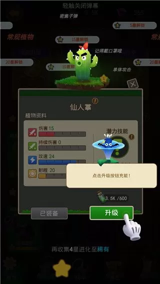 2、将仙人掌进行合成,合成等级越高,战斗力越强大。