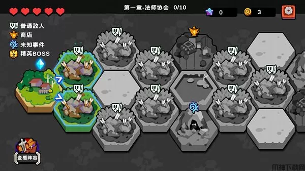 8、游戏关卡到最后会出现最终精英boss,将其消灭即可通关,玩家五格生命,失败一次扣一个,每次失败都能进行随从选择,玩家需要在有限生命次数内搭配出强力队伍,击败强敌。