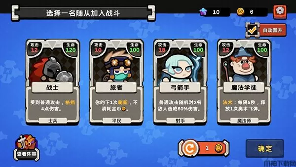 6、每次关卡战斗结束后,都可以选择一名随从加入战斗,没有心仪随从也可以使用金币进行刷新。