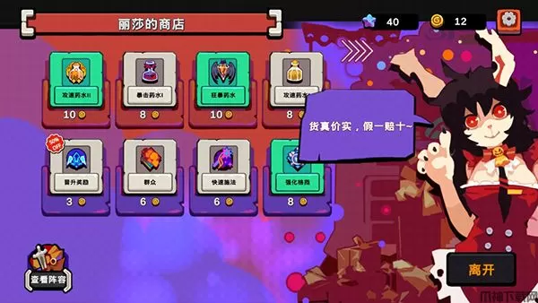7、关卡中还可以进入商店,金币多就可以购买消耗品和圣物羁绊,提升战力。