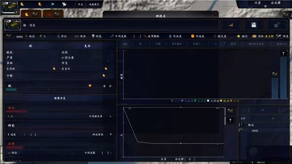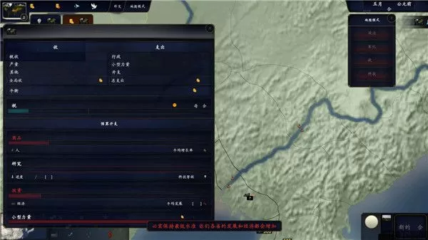 如果你玩的是一个大国,比如玩的是中国,你有多种选择,你可以选择点一部分军队维护,然后点一部分税收和行政,然后入侵其他国家。你也可以全点经济增长和产业收入,大力发展经济,等经济上去了,再带动科技人口。你还可以选择点行政,人口增长,和税收,大力发展人口。这样做既不向只发展经济那样,战斗力弱,一打仗就会经济大损,也不会像只发展军队那样,被经济强大的国家拖垮。