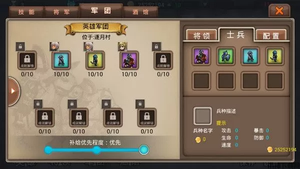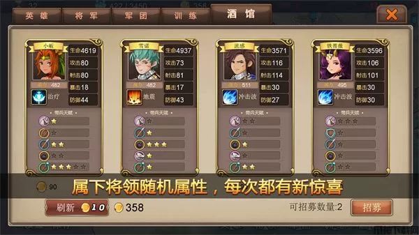 你可以在酒馆招募合适的将领,英雄等级越高可招募将领越多。