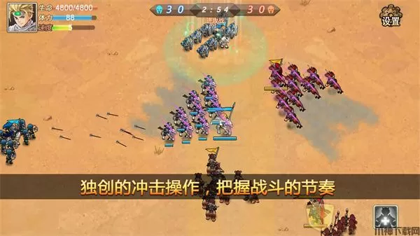 1、搭配不同的兵种,运用战场的地形优势不断的上阵杀敌,体验游戏中的乐趣